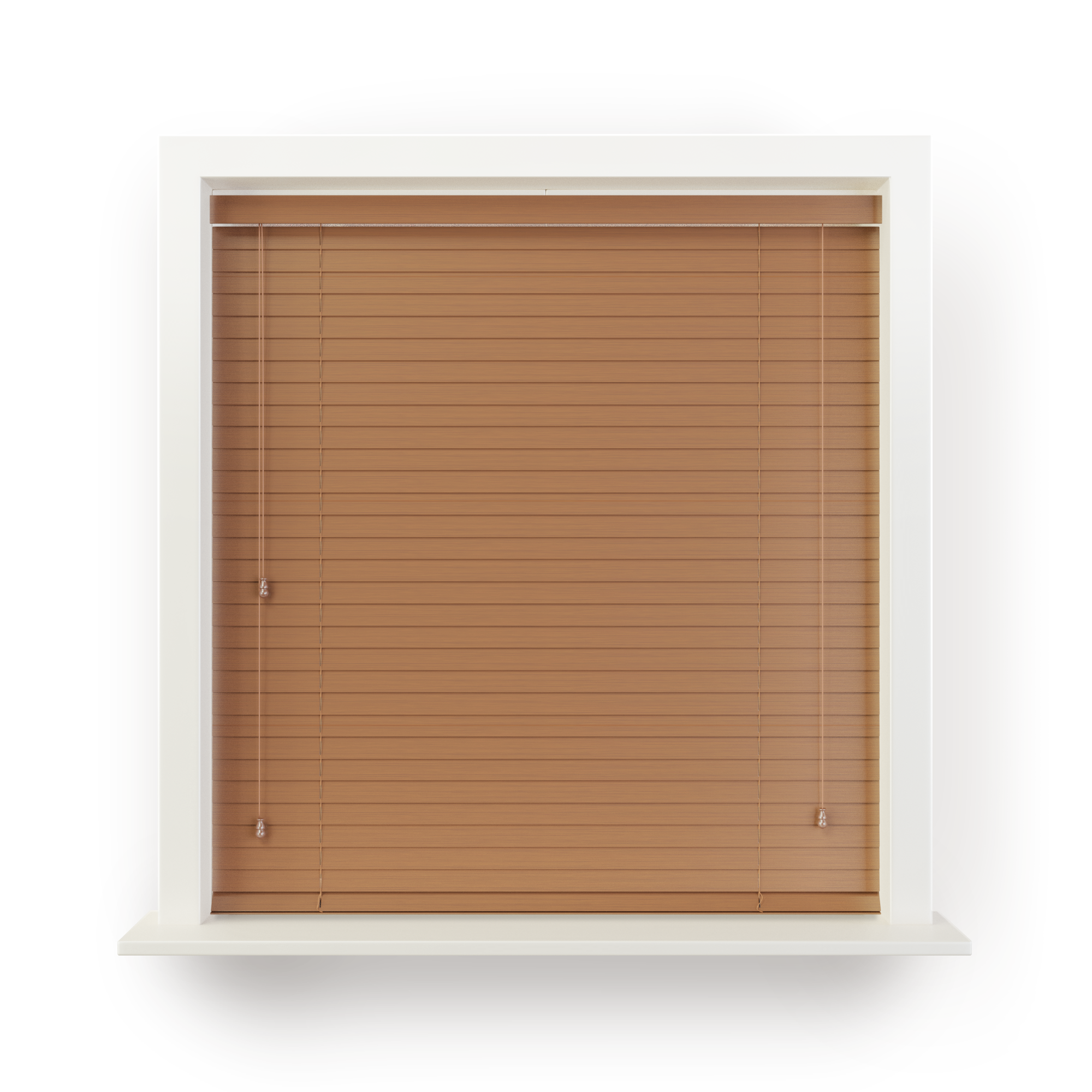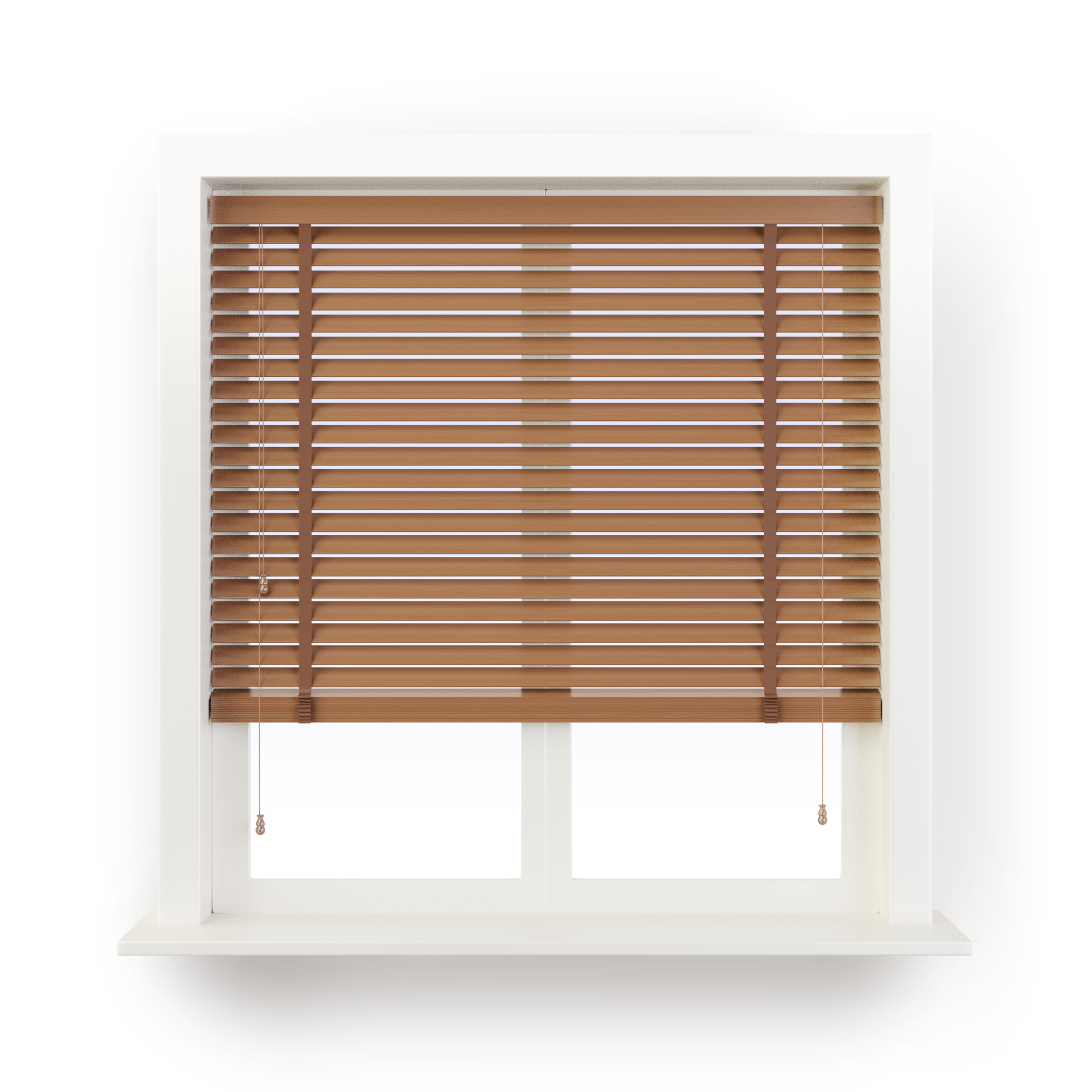 This beautiful wood blind is from our Stained Wood Blind range. With gloss stain allowing the beauty of the wood grain to show through, these blinds will bring an air of elegance to your window. Produced with colour matching pelmet and available with matching fabric tape to added privacy and style.